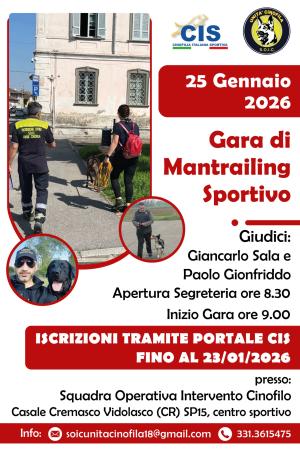 Gara Mantrailing CIS - S.O.I.C. - Casale Cremasco Vidolasco (CR) - 26 gennaio 2026